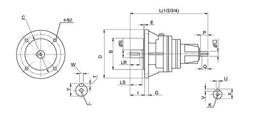 | Size | 法蘭 Flange | 出力軸 Output Shaft | 鍵 Key | |||||||||||
