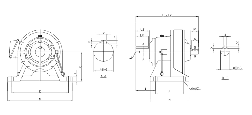 | 型號 Size | 腳座Foot | 出力軸 Output Shaft | 出力軸鍵 Key | ||||||||||||